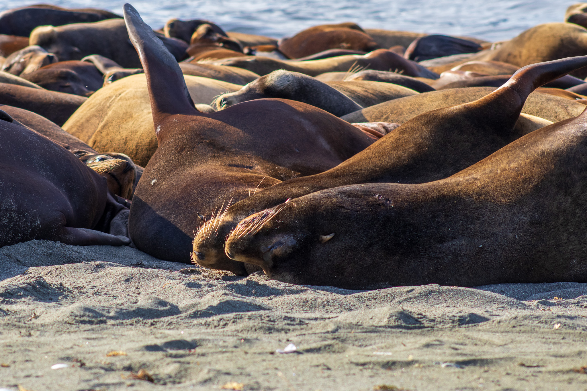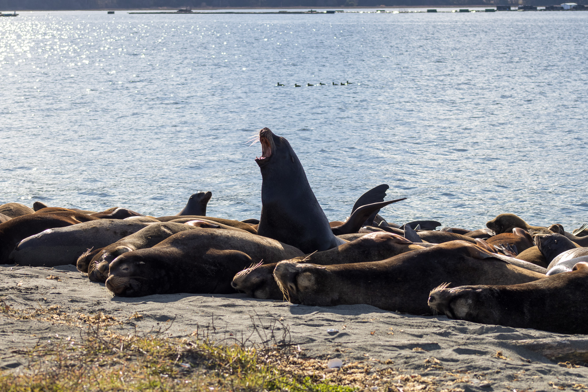 People sat quietly; within just a few feet of these magnificent creatures that lined the beach. They were not only on the beach, they were in the water, you could hear them for miles. The fishing boats were out in the distance – all creatures now are waiting now for the herring spawn that is about to happen. It is time of feast for them.