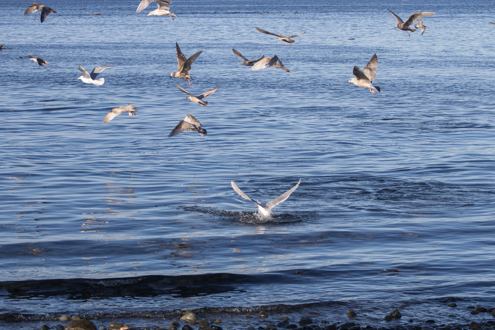 We found sea lions, gulls, ducks, and eagles – a whale watching boat – a BC Ferry – cats – and people – all poised and waiting for the big event.